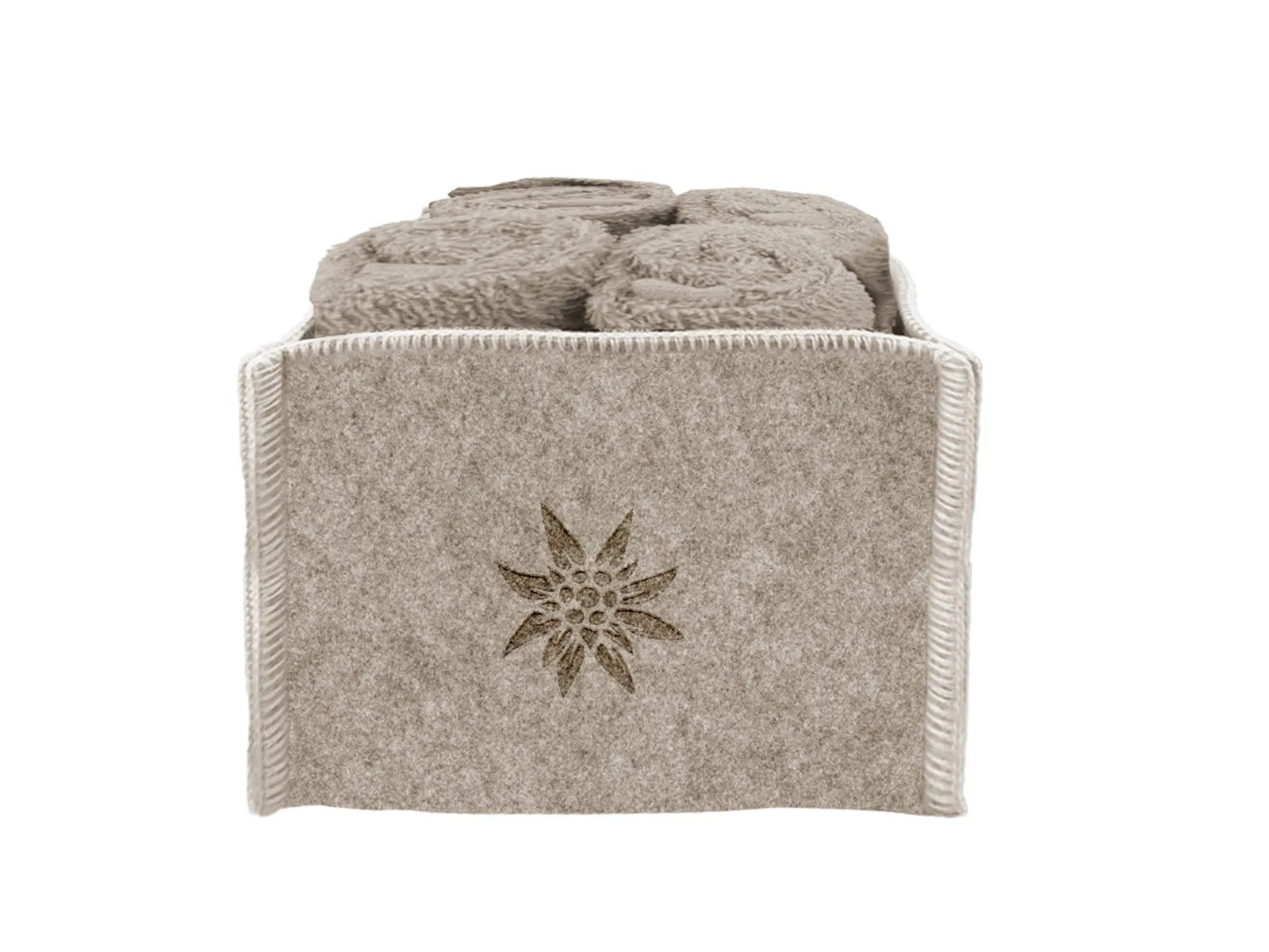 Set 4 lavette in spugna Daunex cesto in feltro con disegno edelweiss