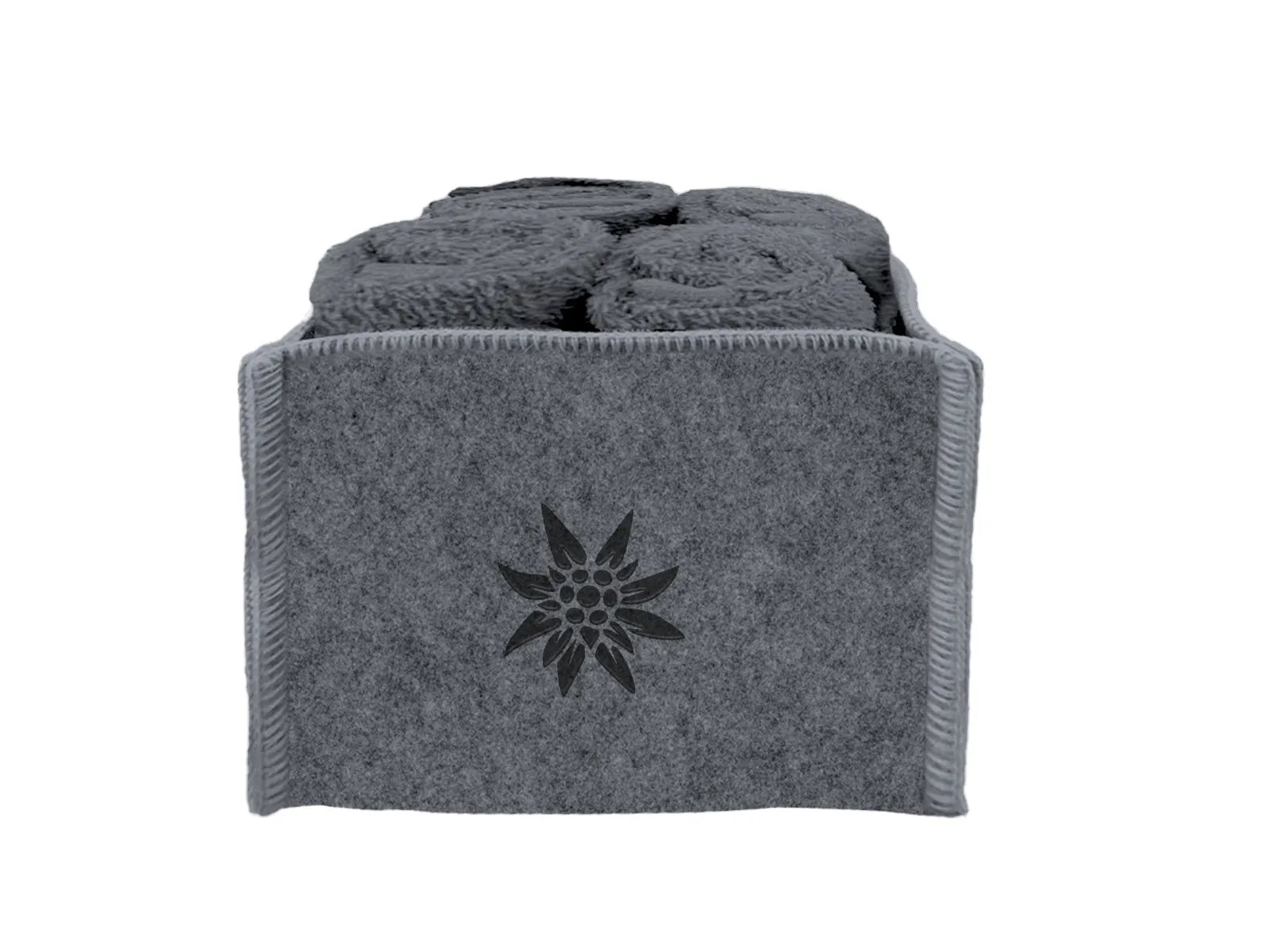 Set 4 lavette in spugna Daunex cesto in feltro con disegno edelweiss